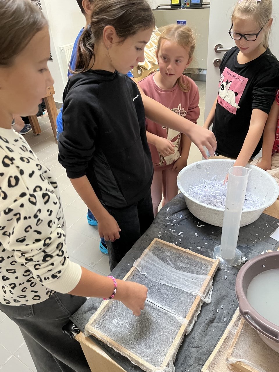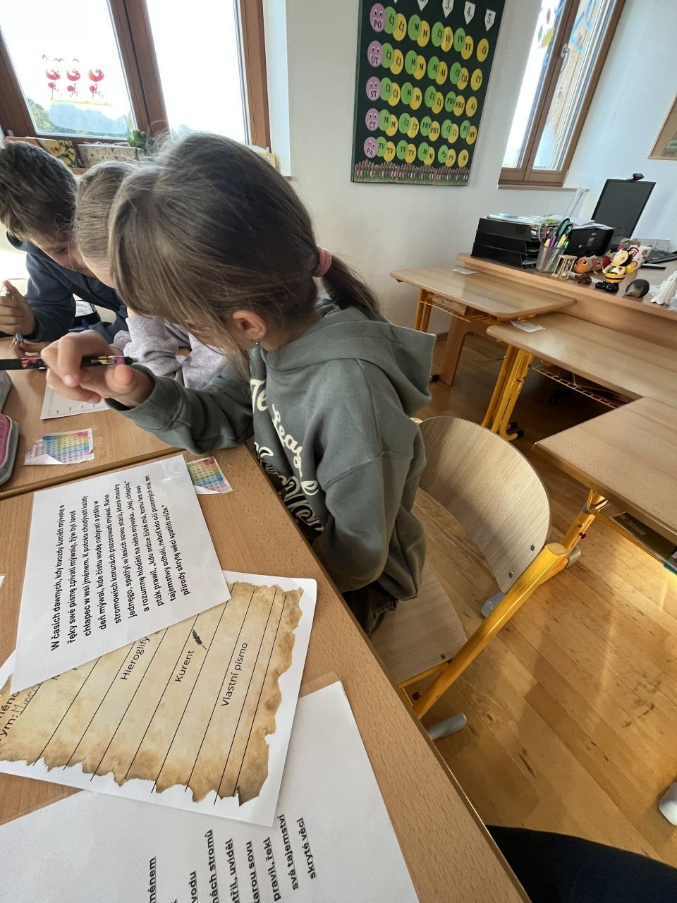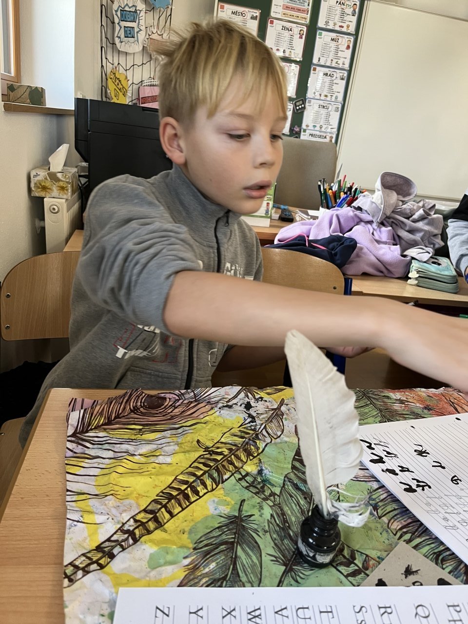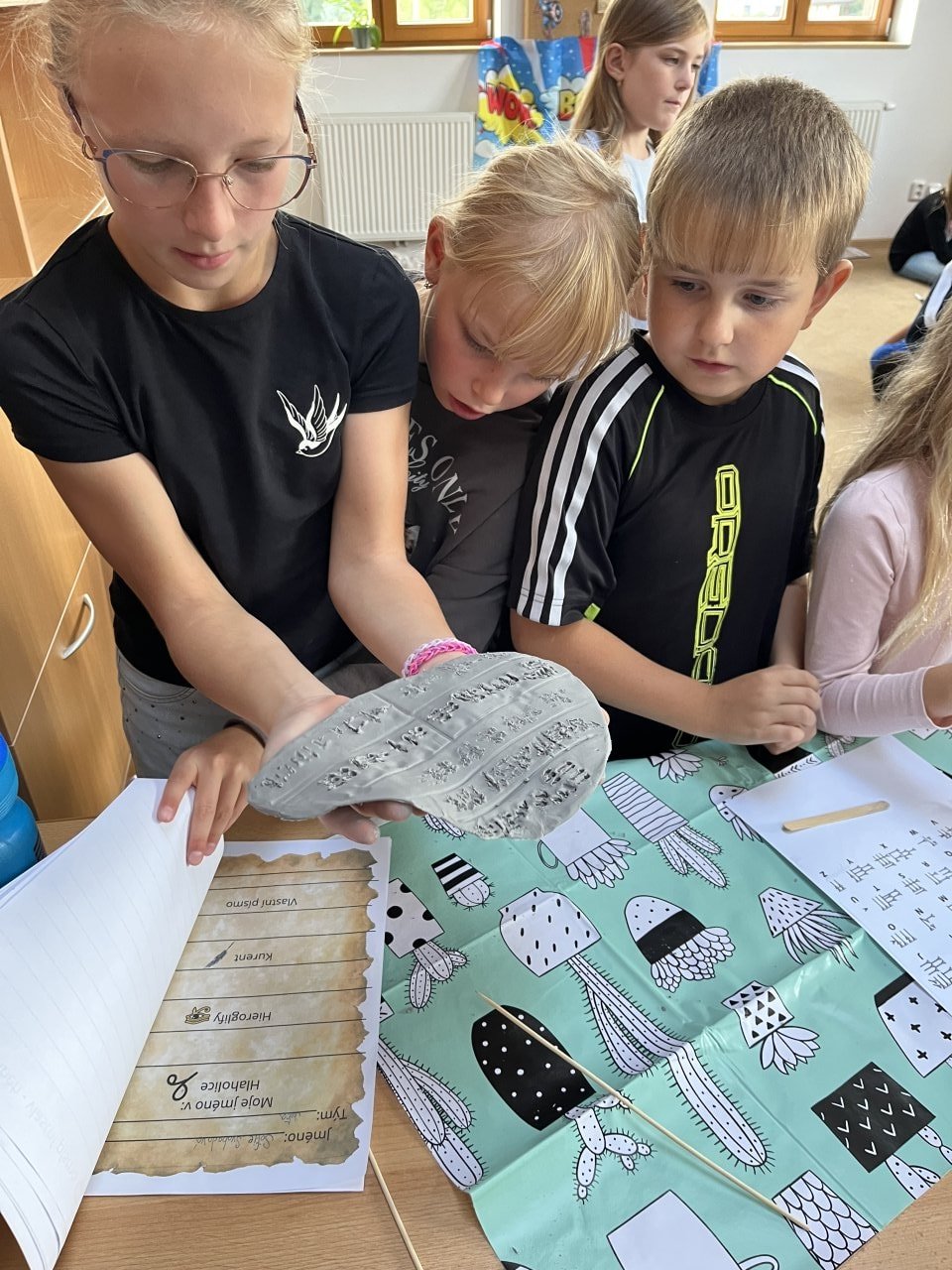 Žáci pracovali ve smíšených skupinách napříč ročníky, což podpořilo jejich spolupráci, komunikaci a vzájemnou pomoc. Na jednotlivých stanovištích si vyzkoušeli psaní historickými technikami, například na hliněné tabulce, hlaholicí, kurentem, brkem či hieroglyfy. Součástí projektu byla také praktická výroba vlastního papíru, díky čemuž mohli zažít celý proces od vzniku materiálu po jeho použití při psaní.